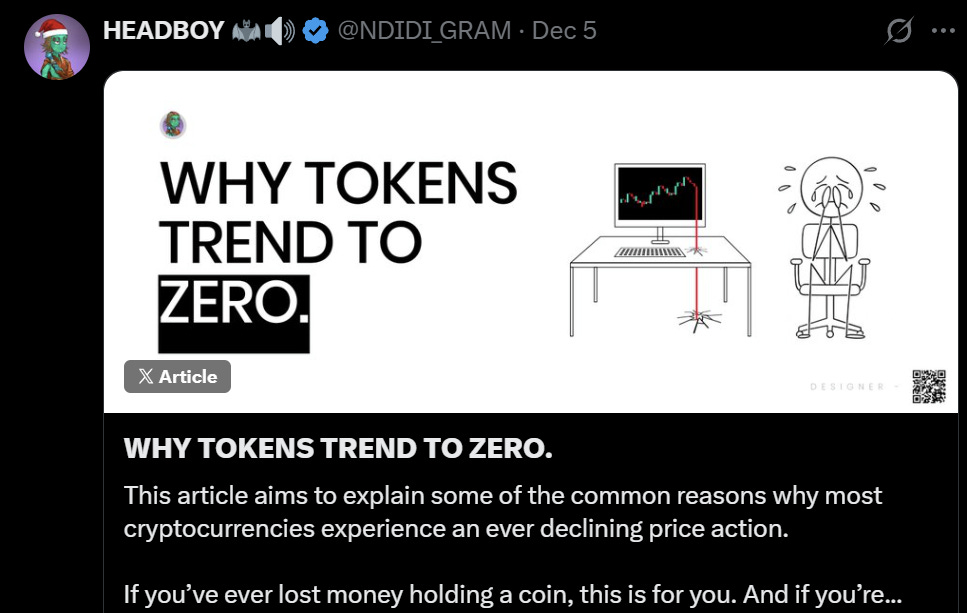 Why most tokens trend to 0