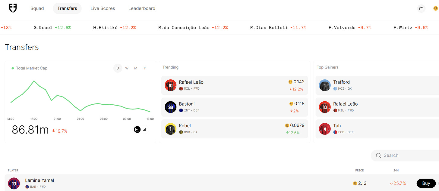 If the players you bet on perform well in real world football matches, you’ll earn points that can be used to open player packs to get more player shares.