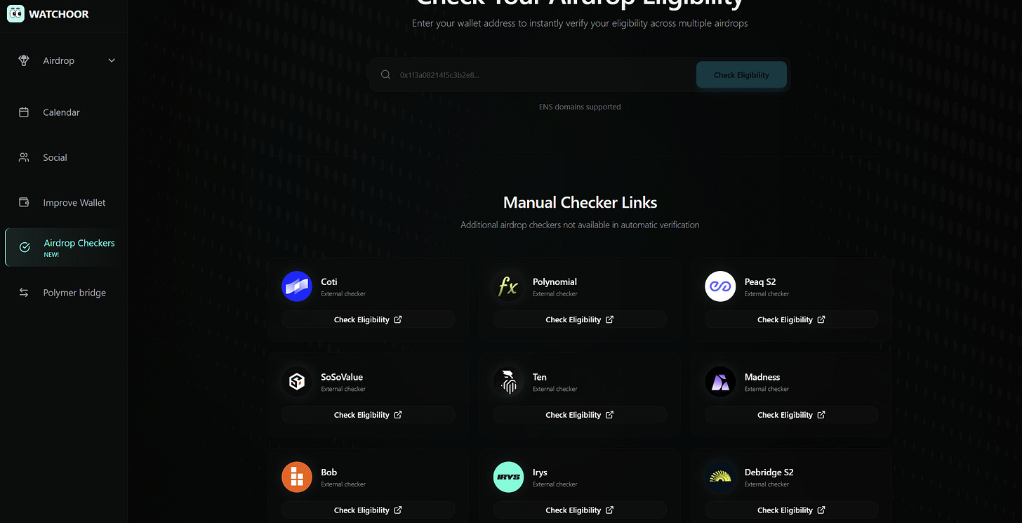 So far, this is the most comprehensive free airdrop checker I’ve found, as it checks your wallet addresses for over 59 airdrops in total.