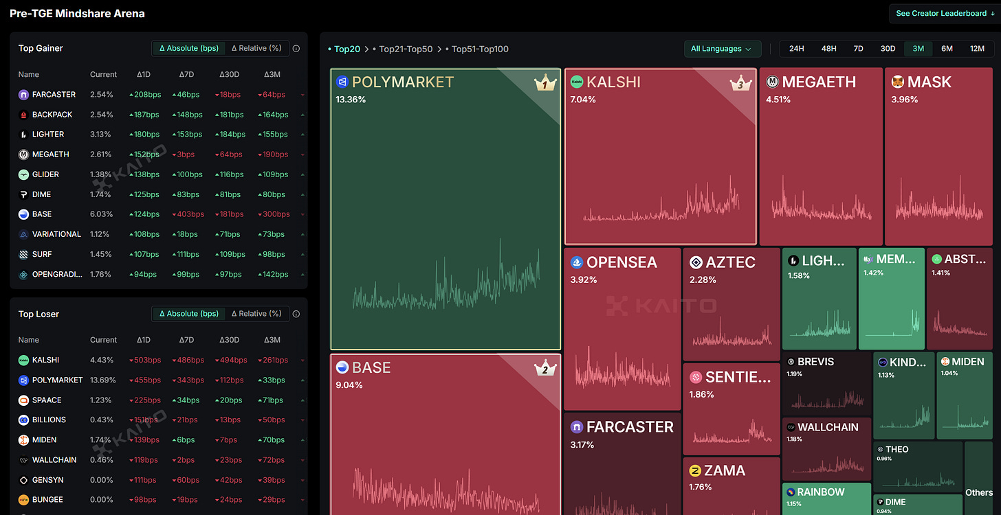 Kaito’s Pre-TGE Mindshare Arena makes it easy to find trending pre-TGE projects.