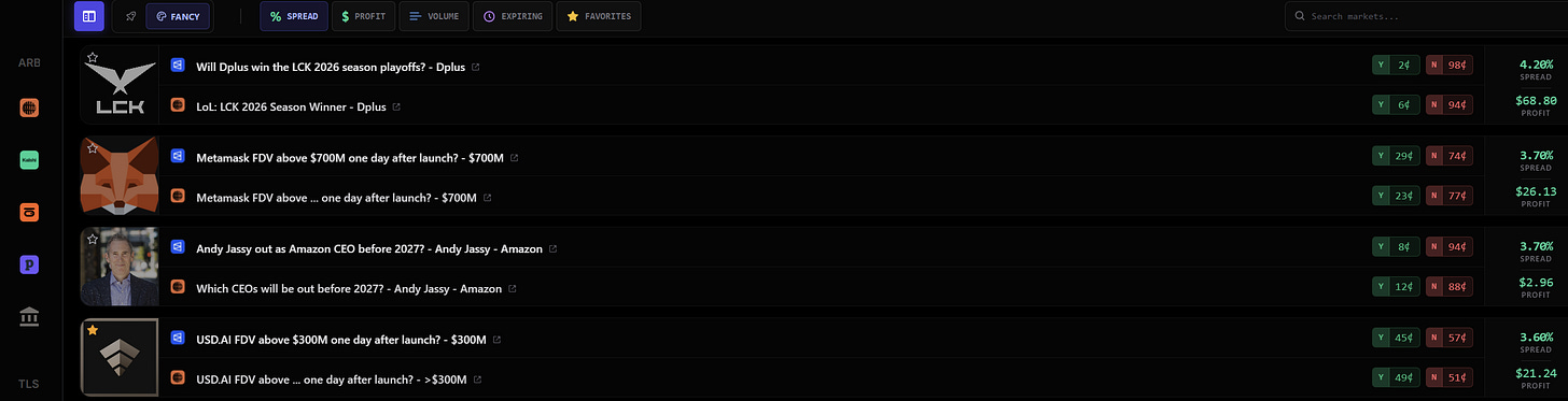 This enables generating a lot of prediction volume while earning a nice yield risk-free by arbitraging them when the odds are slightly different.