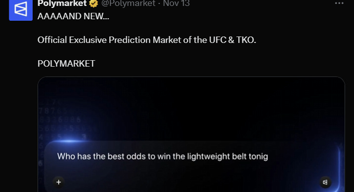 Polymarket became the official exclusive prediction market of the UFC.