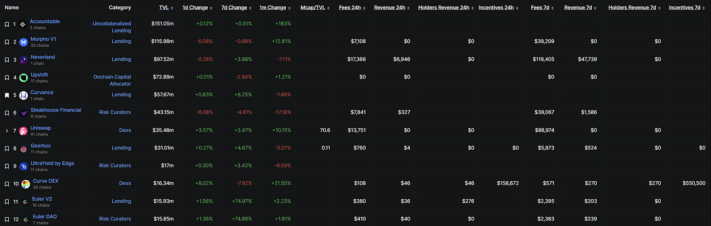 Check out its top ecosystem protocols by TVL (Accountable, Morpho, Upshift, Curvance, etc.) there