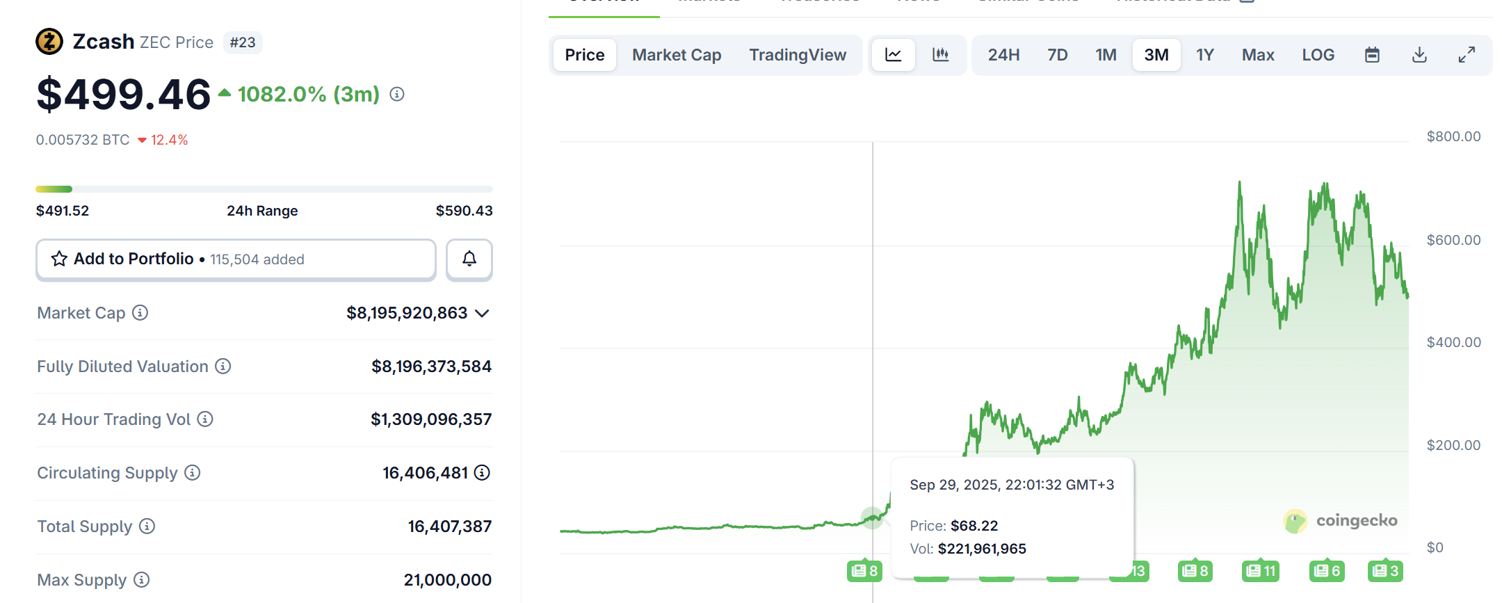 As you can see in the screenshot below, his post was made on Sept. 18. Back then, ZEC was trading at $51. At the time of writing, the ZEC price is $499!