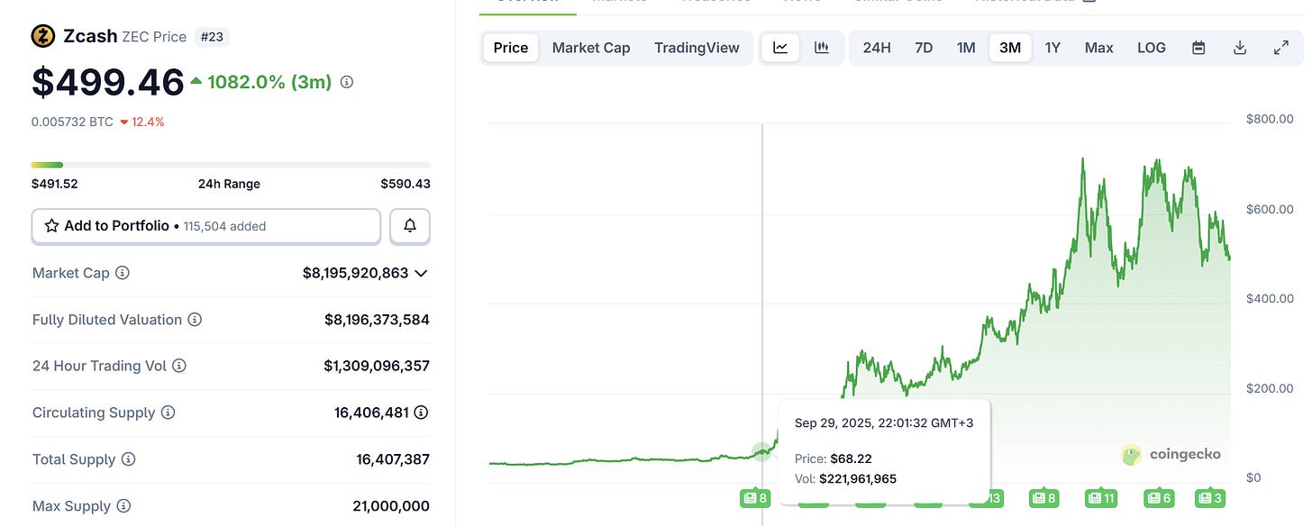 I’ll take the $ZEC token as an example, as it’s up more than 10x in the last 3 months. Now we want to find the exact date just before it started pumping.