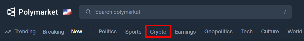 There are thousands of different markets on Polymarket. But you can select to see only the markets related to a certain topic (e.g. Crypto).