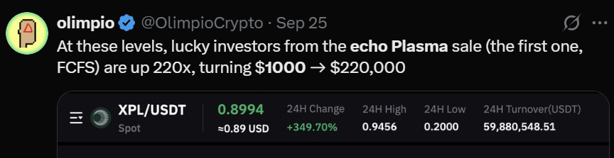 One recent example is Plasmaâs XPL sale on Echo, which certainly exceeded all expectations in terms of returns.