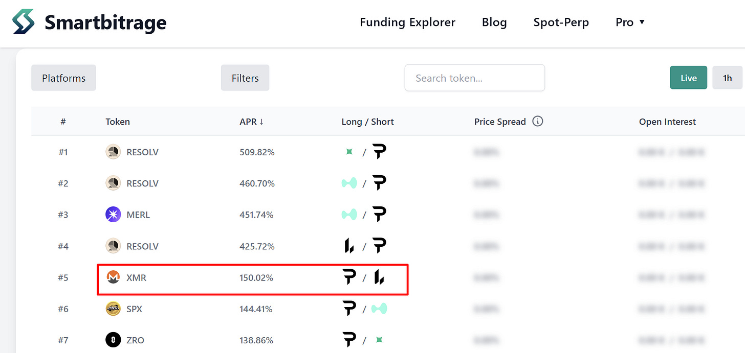 Go to smartbitrage.com and click “Live” to see the best funding rate arbitrage opportunities at this moment